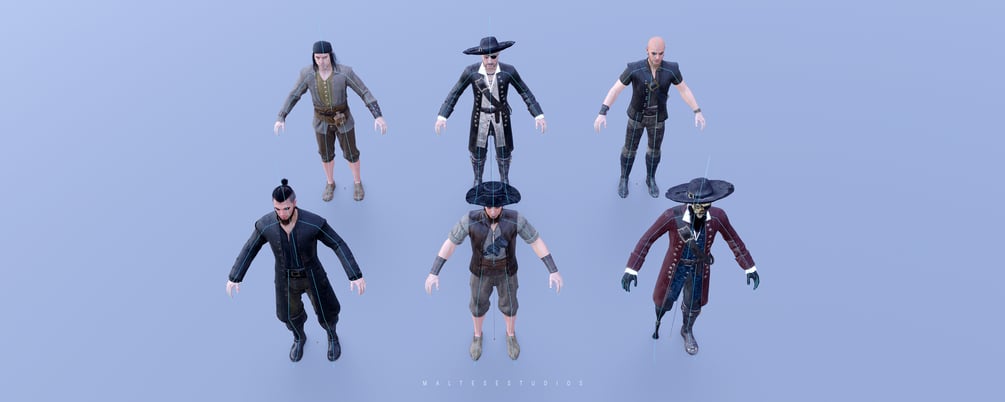 • 6 Rigged Pirates: Fully rigged characters ready for animation.