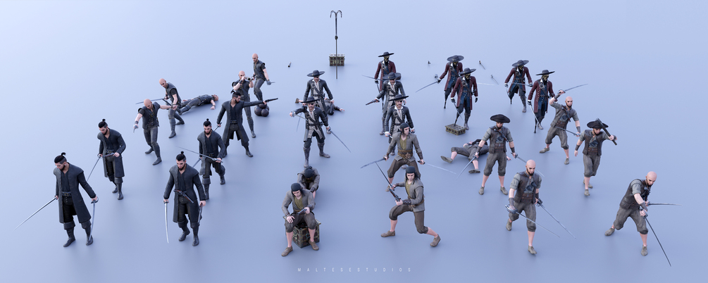 • 30 Posed Characters: A variety of pre-posed pirates, perfect for quick scene setup.